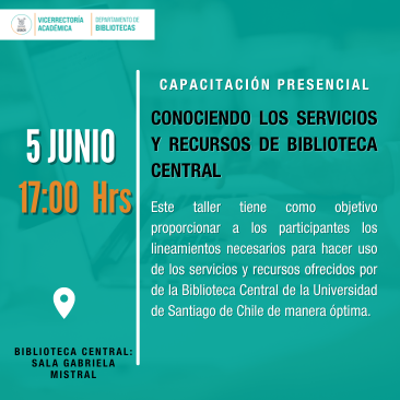 Taller: Conociendo los servicios y recursos de Biblioteca Central