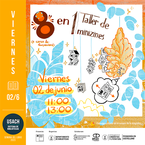 - Taller introducción básica a tres formatos de zines, por Noiryaguará, zinester e historietista. Entre las 11:00 y las 13:00 llevaremos a cabo en Biblioteca Central. * Este taller abierto a todo publico, previa inscripción haciendo clic en este enlace.