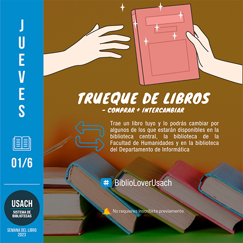 - Trueque de libros: compras menos, intercambia más. En la Biblioteca Central, La Biblioteca de la Facultad de Humanidades, en Biblioteca del Departamento de Informática y en la Biblioteca de Psicología, podrás intercambiar libros que poseas y que ya no utilices con otros que estarán disponibles para ti. * No requieres inscripción previa.