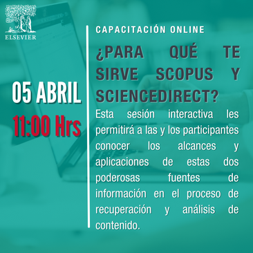 Te invitamos a participar en el webinar ¿Para qué te sirve Scopus y ScienceDirect?.