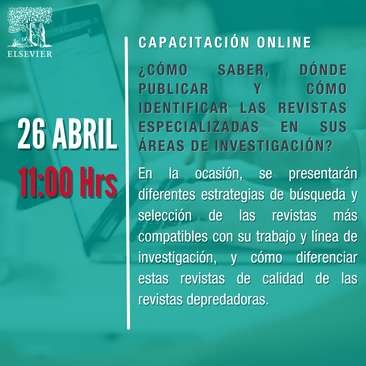 Te invitamos a participar en el webinar “Cómo saber dónde publicar y cómo identificar las revistas especializadas en sus áreas de investigación”.