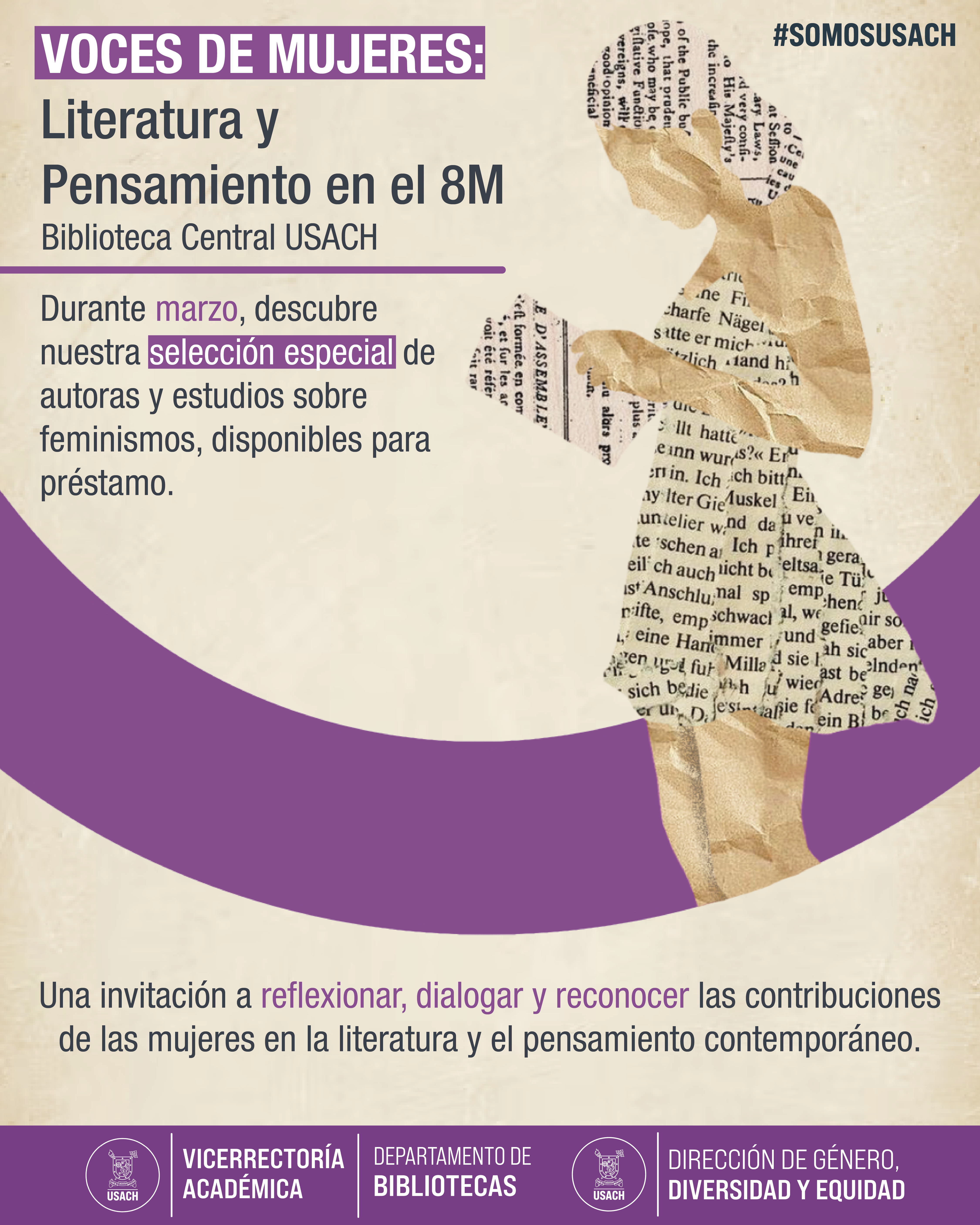 Durante marzo, Biblioteca Central de la Universidad de Santiago de Chile impulsará una iniciativa de fomento lector orientada a relevar la producción intelectual y literaria de mujeres, a través de una selección especial de obras disponibles para la comunidad universitaria.